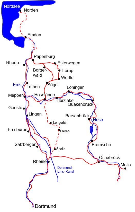 In Papenburg ist die Meyer Werft zu bestaunen. Vielleicht läuft gerade mal wieder ein Luxusliner vom Stapel. Den Transrapid kann man im Besucherzentrum in Lathen sehen (Führungen mit Fahrt). In Groß Hesepe ist ein kleiner Laden der absolute Renner: Fabrikverkauf von Koppenrath und Wiese! Hier kann man sich mit Kekse für die Weiterfahrt eindecken.